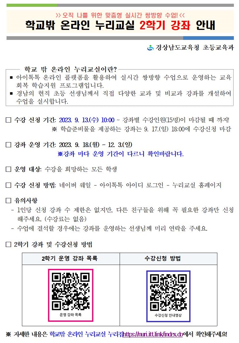 2023. 학교밖 온라인 누리교실 2학기 강좌 안내